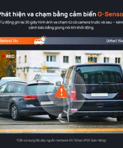 Khi xe đang đỗ, nếu cảm biến G-Sensor phát hiện va chạm, camera hành trình sẽ tự động ghi lại đoạn video sự cố dài 30 giây. Khi khởi động xe, bạn sẽ nhận được thông báo bằng giọng nói về việc ghi hình.
